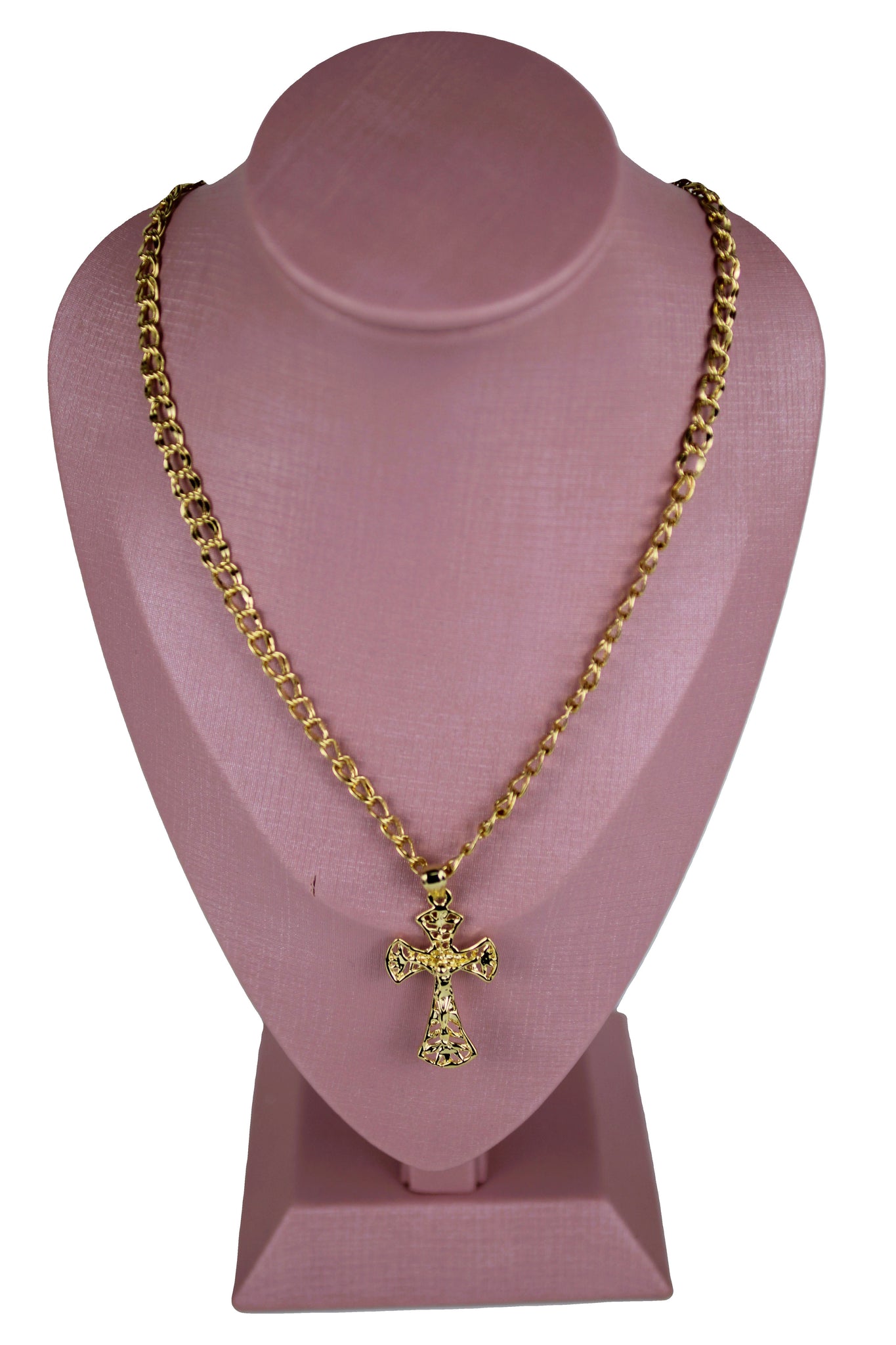 18 Brazilian Gold-Filled 17-Inch Chain and Crucifix Set. This sophisticated piece features a linked chain and an exquisitely engraved crucifix, providing an elegant touch. Meticulously polished to perfection, it boasts a flawless and radiant finish, suitable for both daytime and evening occasions. Designed for children aged 2 to 12 years, the crucifix is interchangeable, allowing for personalized styling.