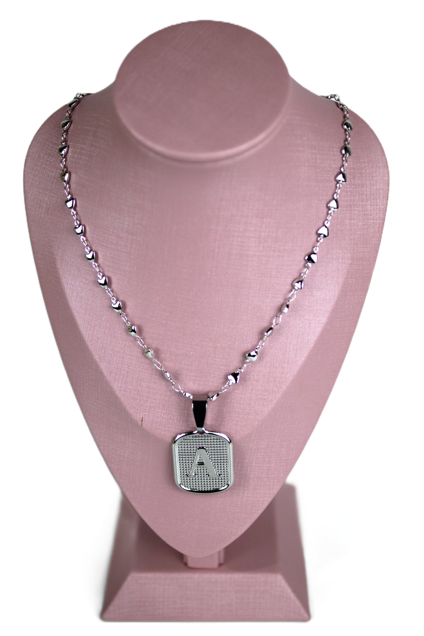 18 Brazilian White Gold-Filled 19-Inch Chain and Initial Pendant Set. This sophisticated piece features heart linked chain adorned with delicate balls and an exquisitely engraved letter F pendant providing an elegant touch. Meticulously polished to perfection, it boasts a flawless and radiant finish, suitable for both daytime and evening occasions. Designed for adults and children aged 12 years and above. The initial pendant is available in letters A, B, D, E, G, F, M, T, S, R, and Y which is interchangeable, allowing for personalization.